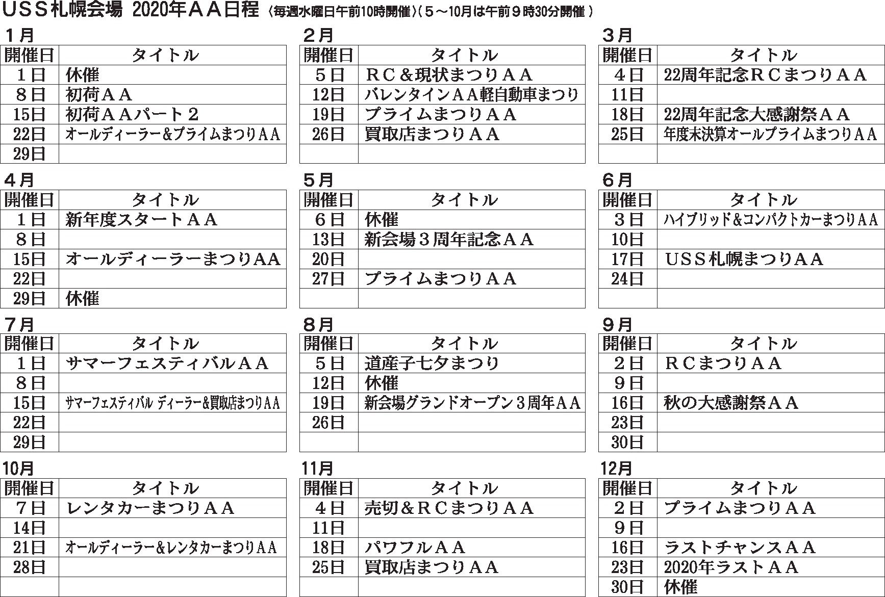 ユー・エス・エス(USS、瀬戸大社長)札幌会場は、2020年中古車オークション(AA)開催日程を固めた。従来通り毎週水曜日に年間49開催を計画。最大規模AA「22周年記念AA」のほか、四半期に一回のペースで大型企画を用意する。 年明けは1...