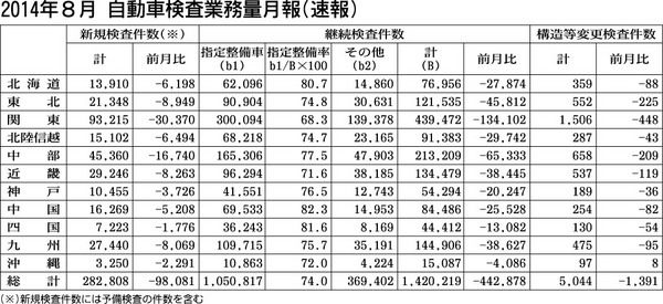 国土交通省は、8月の自動車検査業務量(速報)をまとめた。それによると、新規検査件数は前年同月比2万228件減(9・3%減)の28万2808件、継続検査件数は12万8208件減(9・1%減)の142万219件。構造等変更検査件数は512件減...