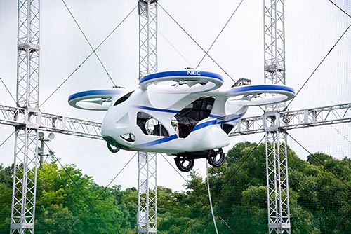 NECでは、試作機を活用して空飛ぶクルマの移動環境に必要となる、交通整理や機体間・地上との通信などを支える管理基盤の構築を本格的に開始する方針。