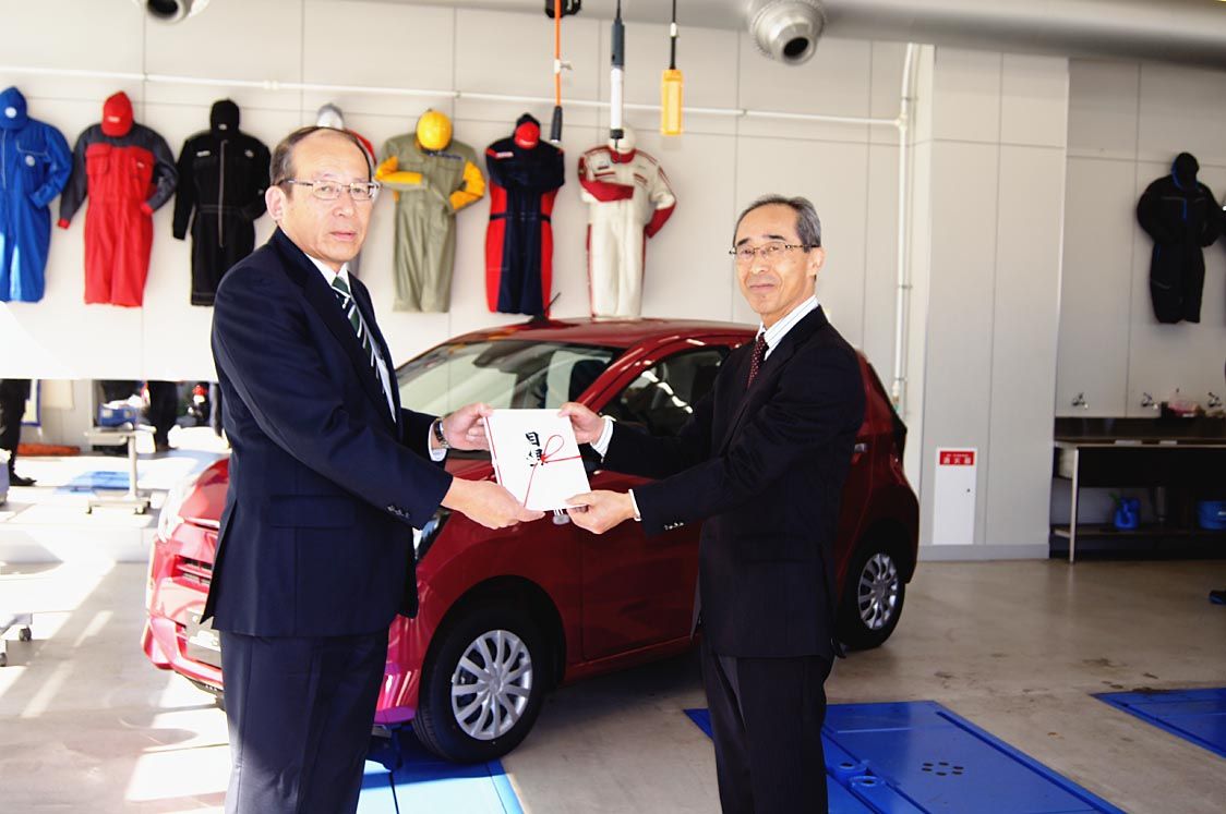 【静岡】静岡ダイハツ(井上憲明社長)は、東海工科自動車大学校(水野貴校長)に教材として排気ガスアナライザー1基を寄贈、このほど浜松市中区の同校で寄贈式を行った=写真。 式典では、井上社長が水野校長に教材の目録を手渡した。井上社長は「自動車...