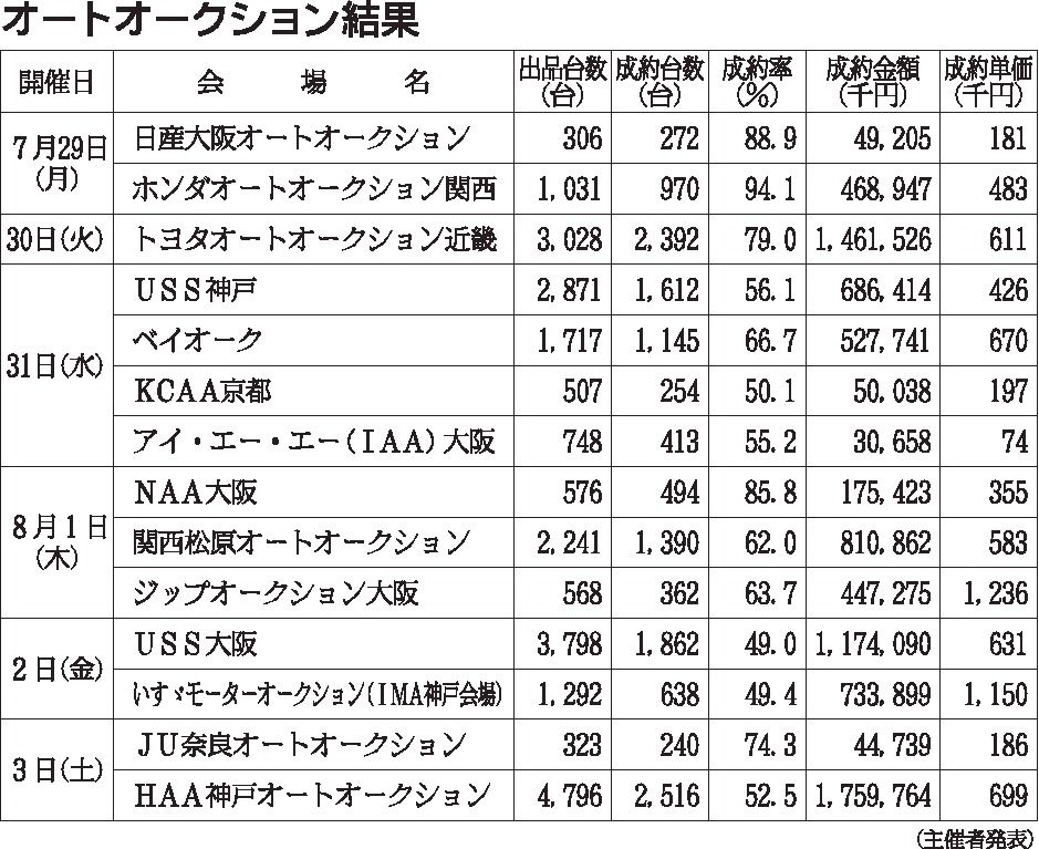 〈オートオークション結果〉 近畿地区 2026/1/12~17