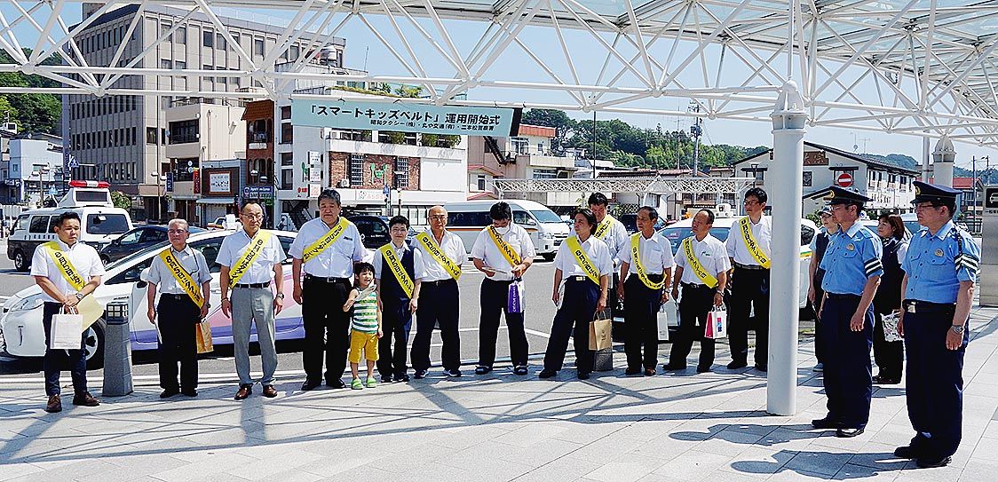 メテオAPAC(横浜市青葉区、増木浩幸社長)が販売する、ベルト型幼児用補助装置「スマートキッズベルト」が、5日の「タクシーの日」に合わせ、福島県二本松市内のタクシー会社2社に導入され、運用開始式が二本松駅前で行われた=写真。タクシー事業者...