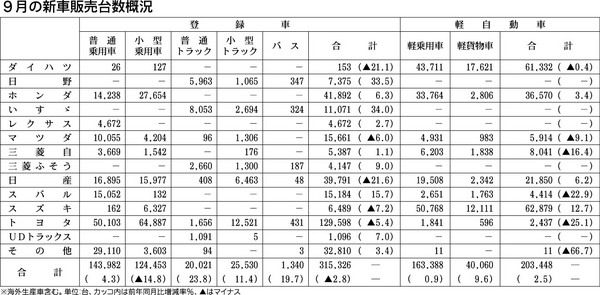 【9月の新車販売台数概況】