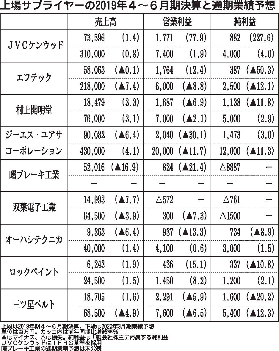 上場サプライヤーの2019年4~6月期決算と通期業績予想