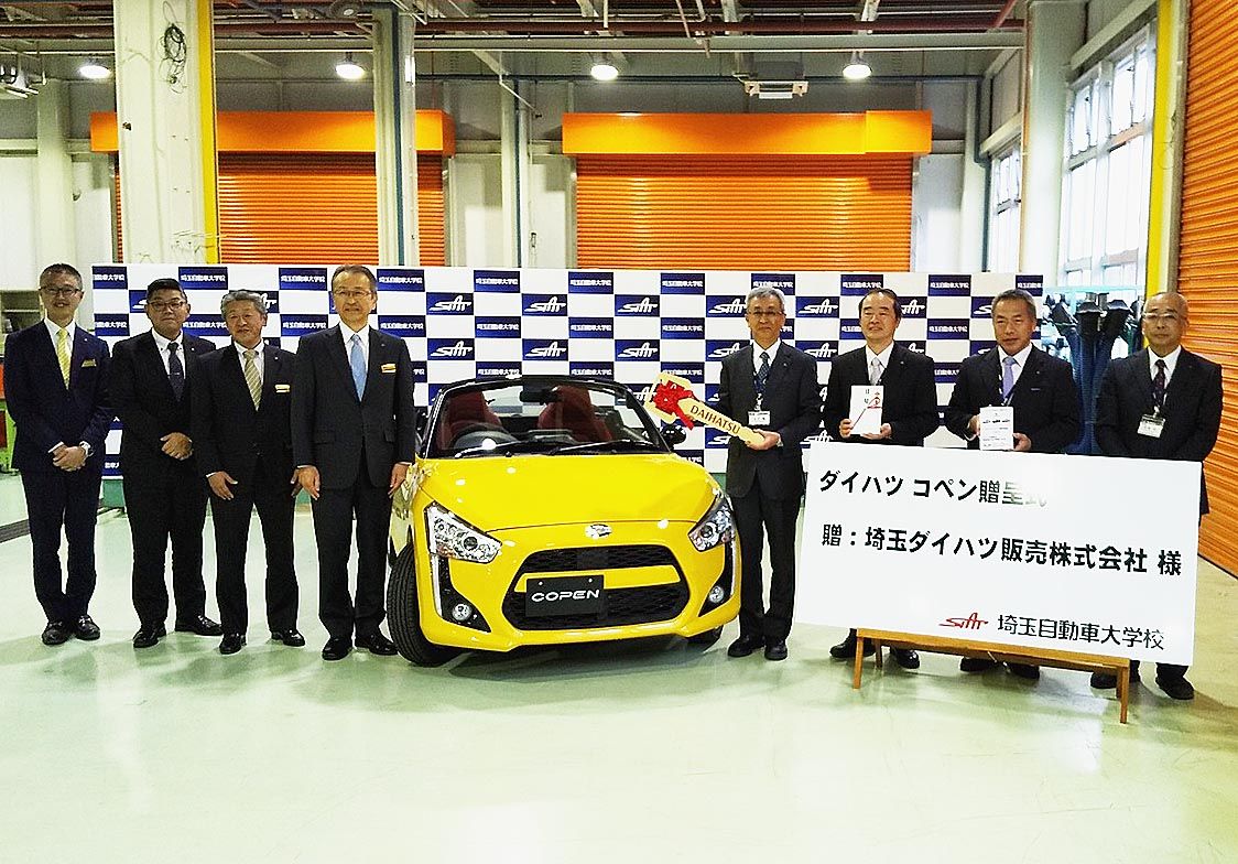 【さいたま】埼玉ダイハツ(細田真一社長)は、伊奈町の埼玉自動車大学校(金子勉校長)に「コペン」(MT仕様)1台を寄贈した=写真。同校で贈呈式が行われ、式には同社の細田社長や黒田利男常務らが出席して金子校長に目録とマスコットキーを手渡した。...