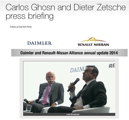 ルノー・日産アライアンスのカルロス・ゴーン会長兼CEOと独ダイムラーのディーター・ツェッチェ会長は3日、パリモーターショーの会場で共同記者会見を開催した。5年目に入る戦略的協力関係のプロジェクトは、当初の3件から12件へと拡大しており、欧...