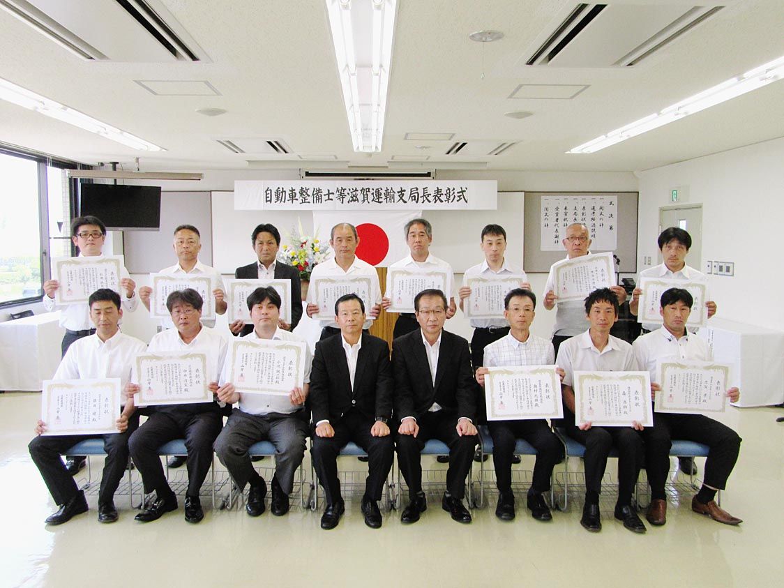 【大津】滋賀運輸支局(山岸斉支局長)は2日、20年以上にわたり整備業務に精励したとして県内の事業場に務める14人の自動車整備士などを表彰した=写真。 同支局長表彰は、滋賀県自動車整備振興会(後藤敬一会長)が推薦する20年以上の整備実務経験...