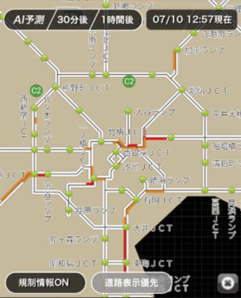 VICS(道路交通情報通信システム)による最新の道路状況に基づいたAI渋滞予測情報を、「乗換MAPナビ」(Android版)の全国高速道路の簡易地図に提供する実証実験を2019年12月31日まで実施する。利用は無料。ユーザーに新しい渋滞予測を体験してもらい、ニーズと課題を把握するのが目的。