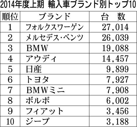 日本自動車輸入組合(JAIA)が6日発表した2014年度上期の輸入車新規登録台数は、前年同期比13・9%減の14万4997台で09年以来5年ぶりのマイナスとなった。外国メーカー車も9・1%減だった。一方で、9月の外国メーカー車新規登録台数...