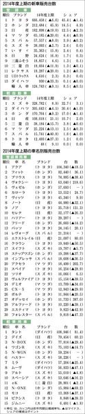 【2014年度上期の新車/車名別販売台数】