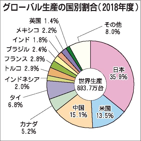 ダイハツ工業、日野自動車を含むトヨタグループの2018年世界生産は、1062万台(前年比2%増)と過去最高だった。トヨタ自動車単体の世界生産(18年度)は前年比0・2%増の893万7千台。前年度は2年ぶりに減少したものの、主に中国などアジ...