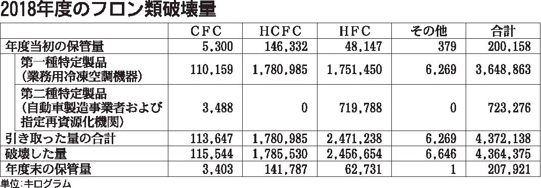 環境省は、フロン排出抑制法に基づく2018年度のフロン類の再生量と破壊量の集計結果をまとめた。それによると、18年度のフロン類の再生量と破壊量の合計は前年度比2・1%減の5715㌧となった。内訳はフロン類の再生量の合計が同4・3%増の13...
