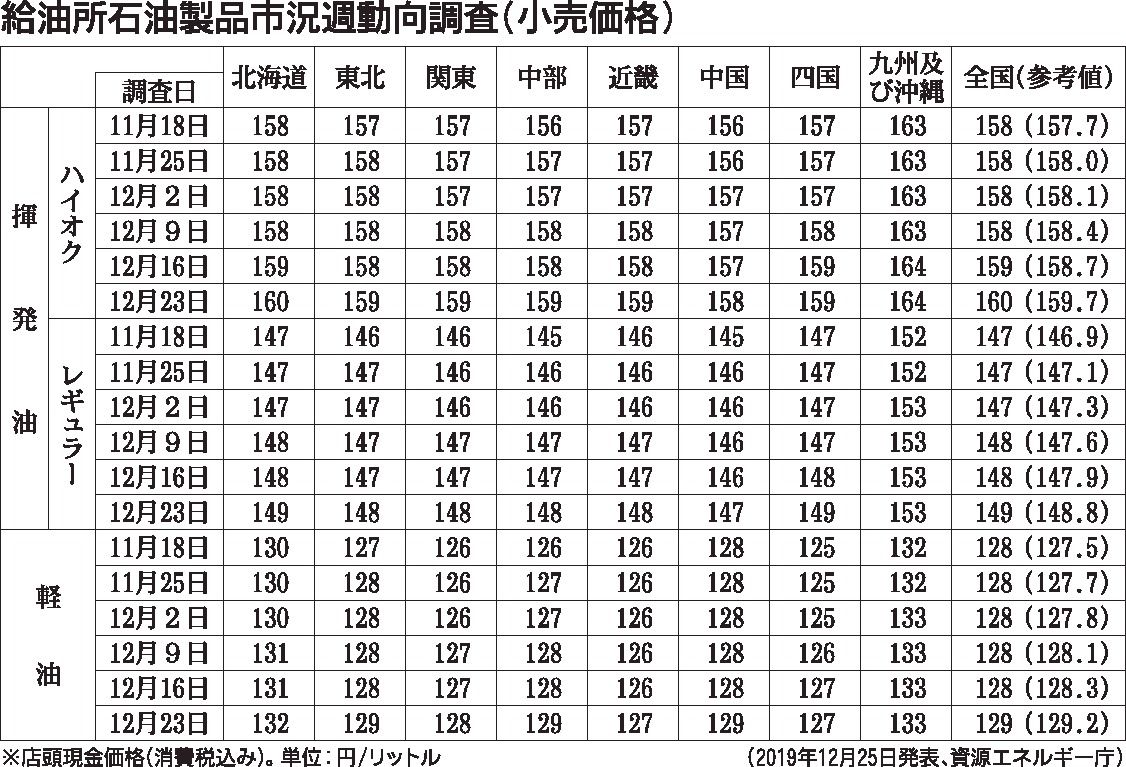 〈給油所石油製品市況週動向調査(小売価格)〉2025/9/29~11/4