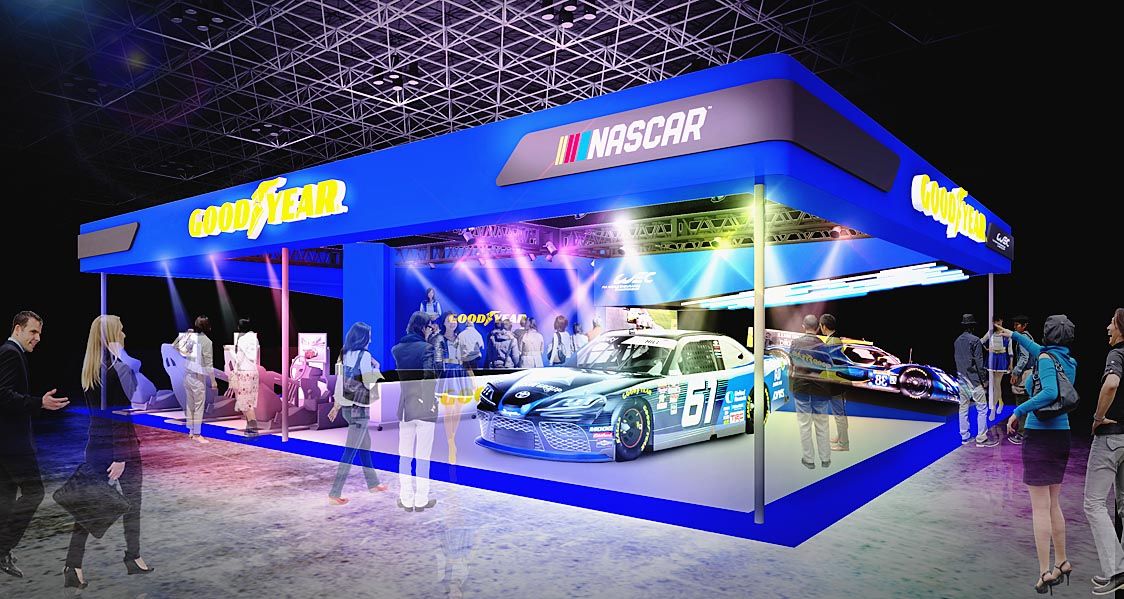 日本グッドイヤー(金原雄次郎社長、東京都港区)は、2020年1月10日に幕張メッセ(千葉市美浜区)で開幕する「東京オートサロン2020」に出展すると発表した=ブースイメージ。NASCARに参戦するトヨタ自動車「スープラ」やWEC(世界耐久...