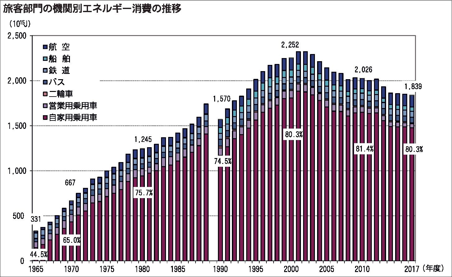 エネルギー白書2019、旅客部門のエネルギー消費量 4年連続で減少
