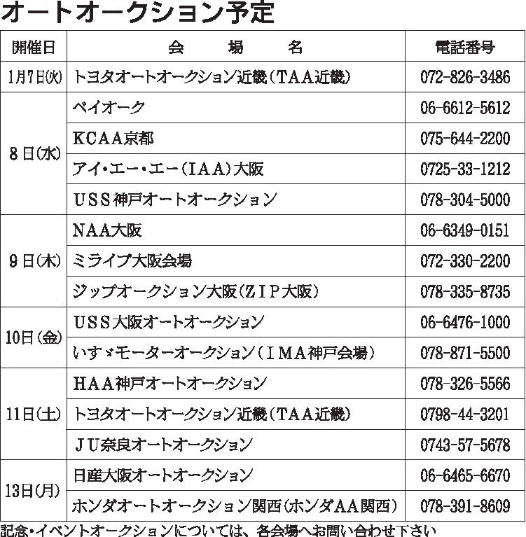 〈オートオークション予定〉近畿地区 2025/11/11~17