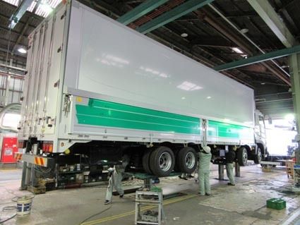 ■ウイングボディー架装に強み 工夫を積み重ね生産性向上/大小クレーンでアシスト、作業用高台が可動   側面パネルを跳ね上げることで荷物の積載を容易にするウイングボディーの架装に強みを持つパブコ(サティヤカーム・アーリャ社長、神奈川県海老名...