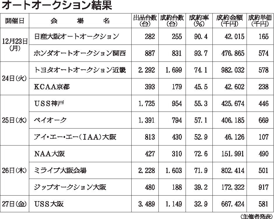 〈オートオークション予定〉近畿地区 2025/11/11~17