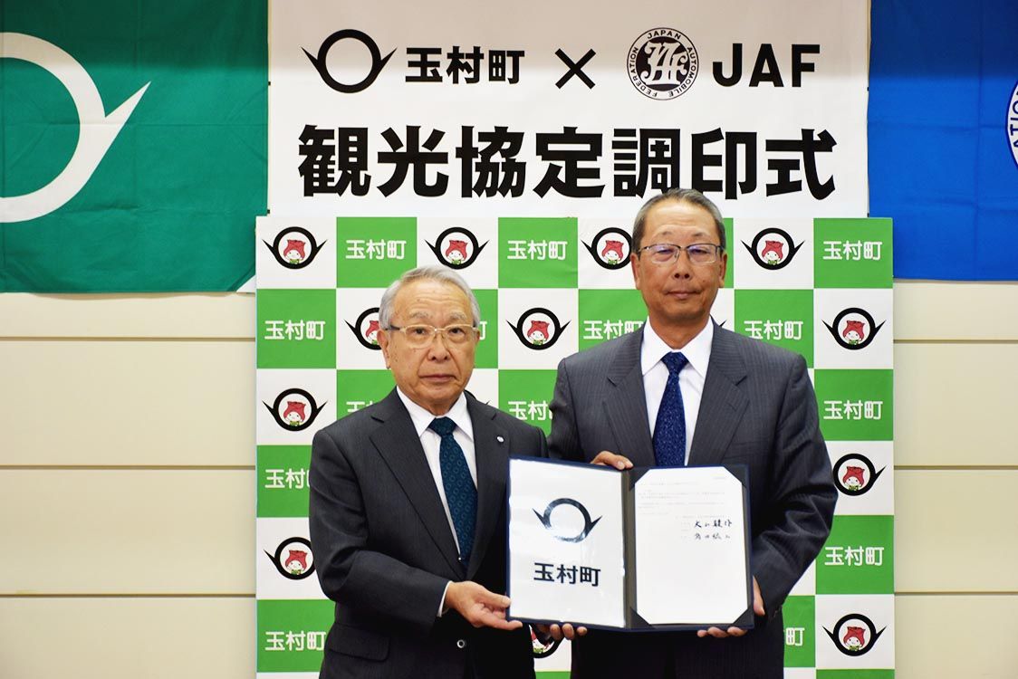 【前橋】日本自動車連盟(JAF)群馬支部(大山駿作支部長)は、玉村町役場で観光協定締結に伴う調印式を実施した=写真。今回の調印により、群馬県内の観光協定は11番目となる。今後、同支部と玉村町は相互に協力し、町の観光振興を行う。 同支部では...