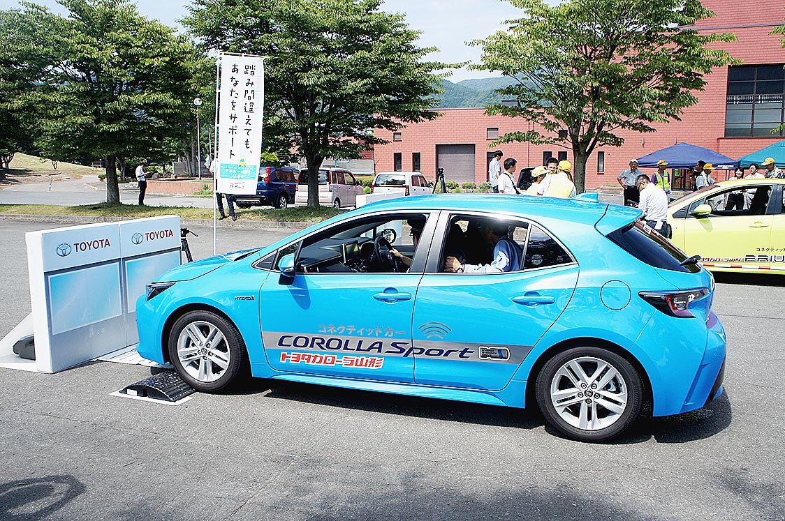 【上山】トヨタカローラ山形(鈴木肇子社長)は8日、上山市の上山市民球場で「サポカー体験試乗会」を開催した=写真。山形県交通安全協会上山地区交通安全協会(神保喜弘会長)の各支部長25人が参加、インテリジェントクリアランスソナー(ICS)の機...