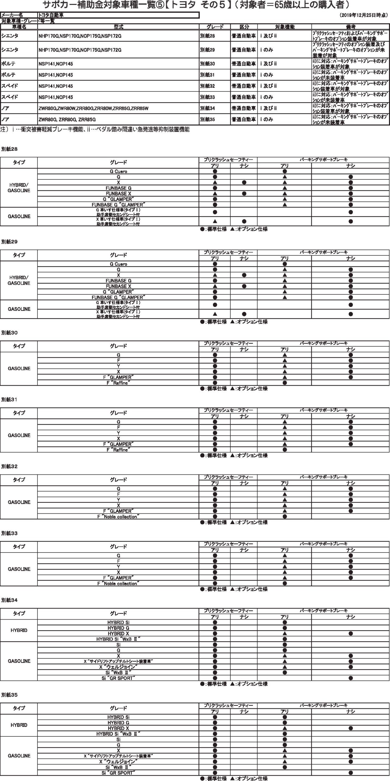 サポカー補助金対象車種一覧⑤ トヨタその5