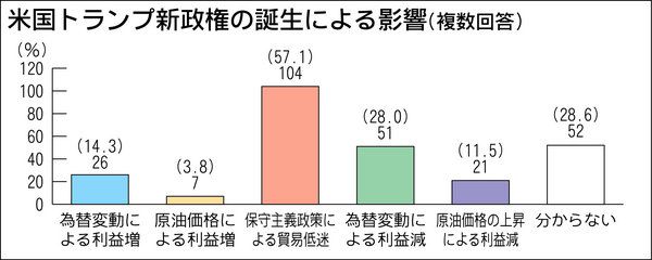 中小企業基盤整備機構は、米トランプ新政権の影響を中小企業に複数回答で聞いた緊急アンケートの結果をこのほど公表した。回答182社のうち、最多だったのは「保護主義政策による貿易低迷」で全体の57・1%を占めたが「分からない」とする回答も28・...