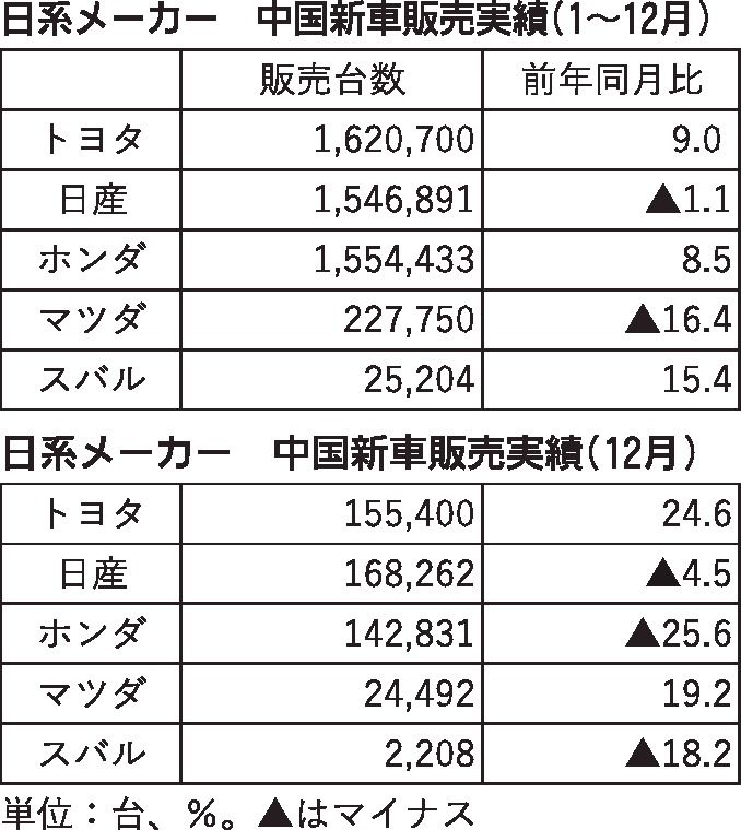 日系5社、19年の中国販売