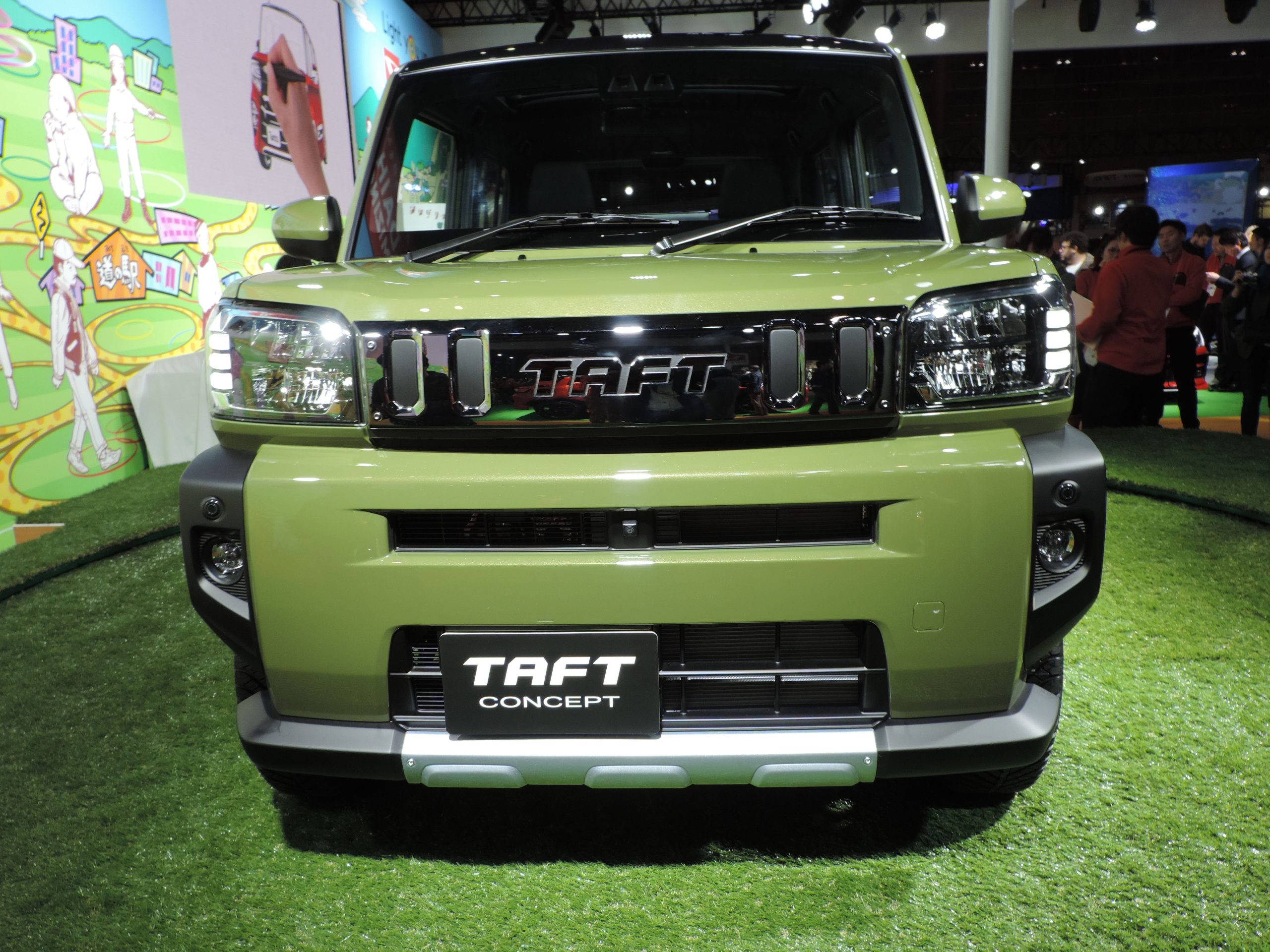ダイハツは軽クロスオーバーのTAFT(タフト)コンセプトを世界初公開した。2020年内の市場投入に向けて開発している新型車のコンセプトカーで、開放感のあるガラスルーフや、フラットで使い勝手向上を図った荷室空間などが特徴。軽商用車ハイゼットトラックとアウトドア雑誌「ピークス」がコラボレーションしたカスタマイズ車両なども展示した。