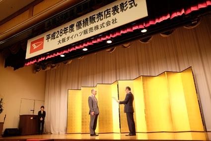 大阪ダイハツ(三宮士郎社長)は19日、大阪市都島区の太閤園で「平成28年度優績販売店表彰式」を開催した。ダイハツ車年間販売台数で12台以上の137社を表彰した。最多販売店には360台の実績を残した北伊丹ダイハツ販売(杉本啓次社長)が輝いた...