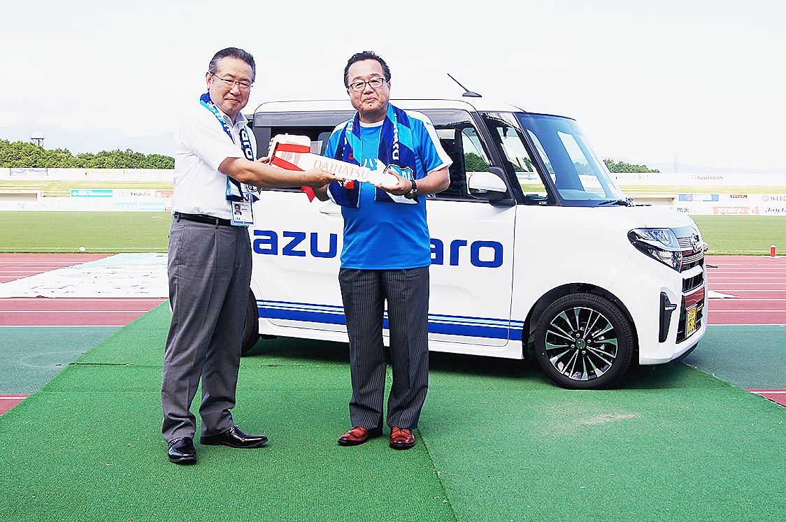 【静岡】ダイハツ沼津(直井稔一社長)は、沼津市を本拠地とする日本プロサッカーリーグ(Jリーグ)のJ3リーグに所属する「アスルクラロ沼津」に新型「タント」を寄贈した=写真。4日に沼津市の愛鷹広域公園多目的競技場で開催された対福島ユナイテッド...