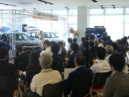 【仙台】トヨタカローラ宮城(●岡博文社長)はこのほど、アムシス苦竹店ショールームで「法人向け新型プロボックス・カムリ発表会」を開いた。トヨタ自動車東日本(白根武史社長)の協力組織「萩豊会」の会員企業など100社を超える法人関係者を招いて新...