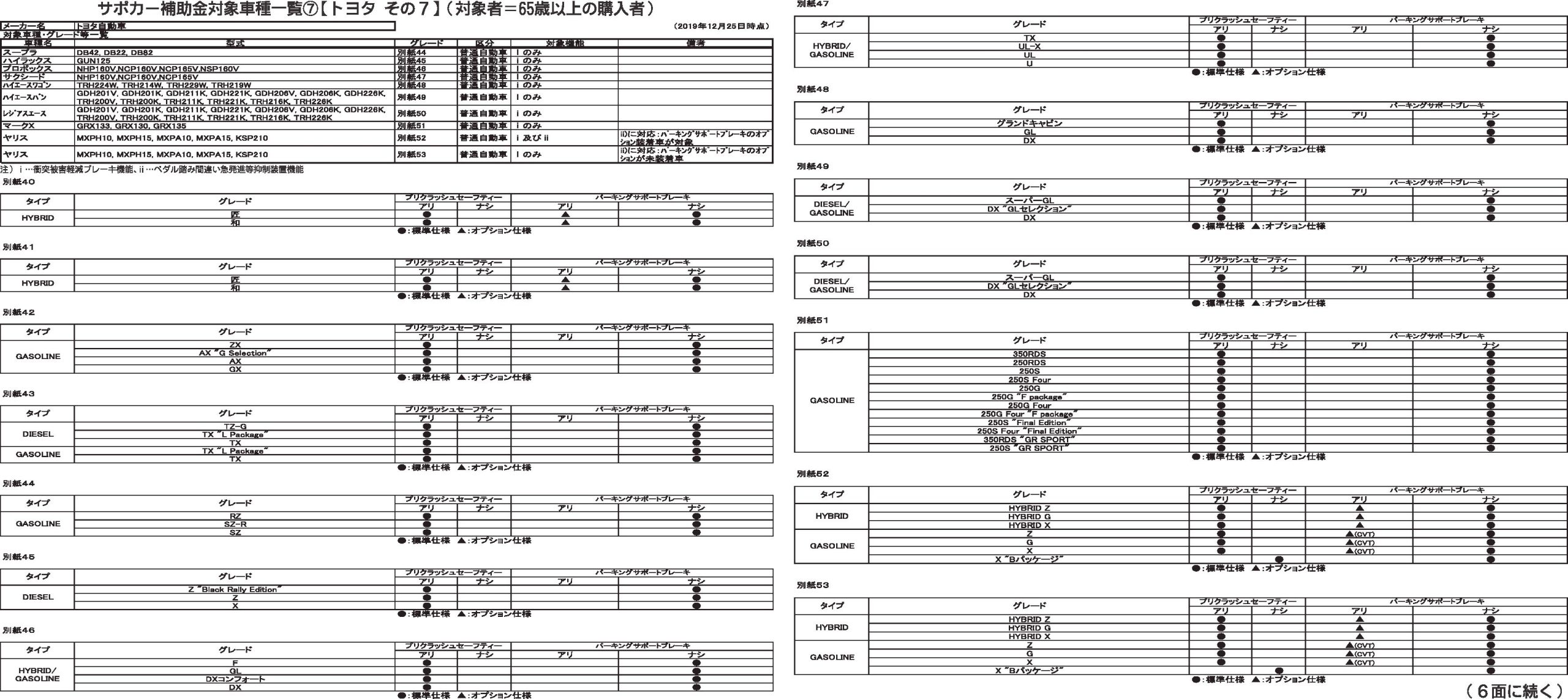 サポカー補助金対象車種一覧⑦ トヨタ その7