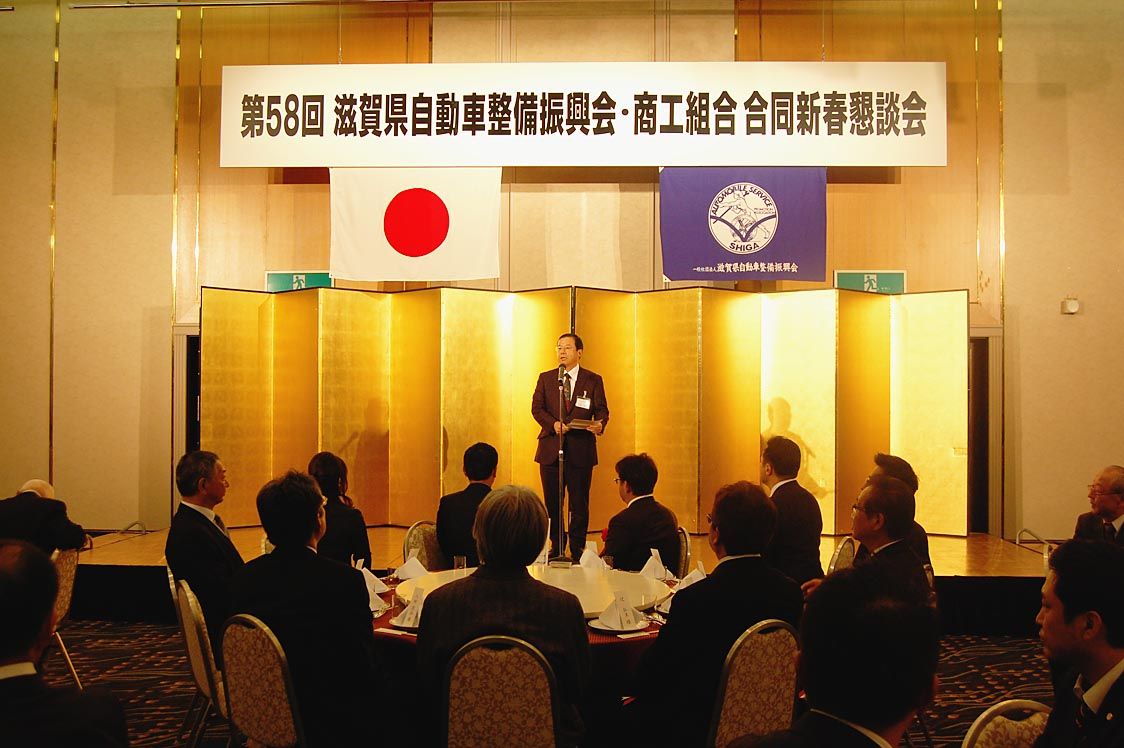 ◆第58回滋賀県自動車整備振興会・同商工組合合同新春懇談会=写真 9日 クサツエストピアホテル(草津市) ▽後藤敬一会長・理事長挨拶 「自動車の先進技術に対応する特定整備制度が実施されるなか、整備工場のあり方が大きく変化する年。子年らしく...