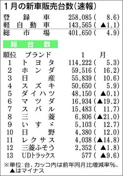 日産が登録1、2位 1月新車、3ヵ月連続プラス