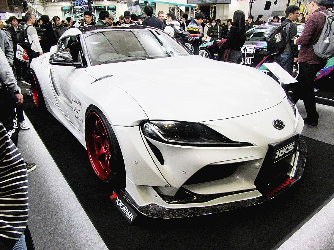 チューニングパーツメーカー大手のエッチ・ケー・エスが提案するトータルチューニングを施したGRスープラ。専用設計の「スーパーターボマフラー」や車高調「ハイパーマックスⅣSP」、制御系チューニングと、空力性能を追求したワイドボディキット「HK...