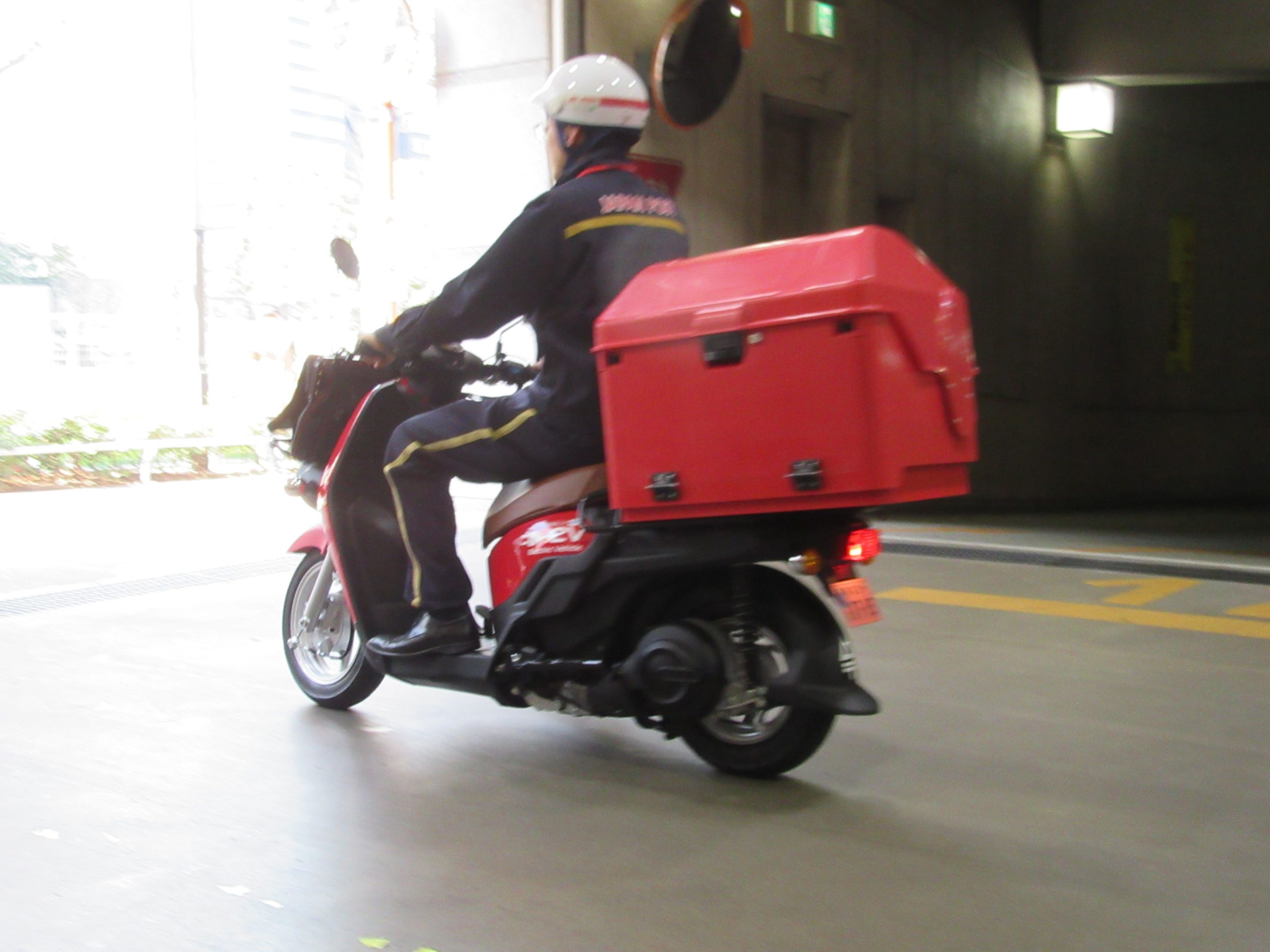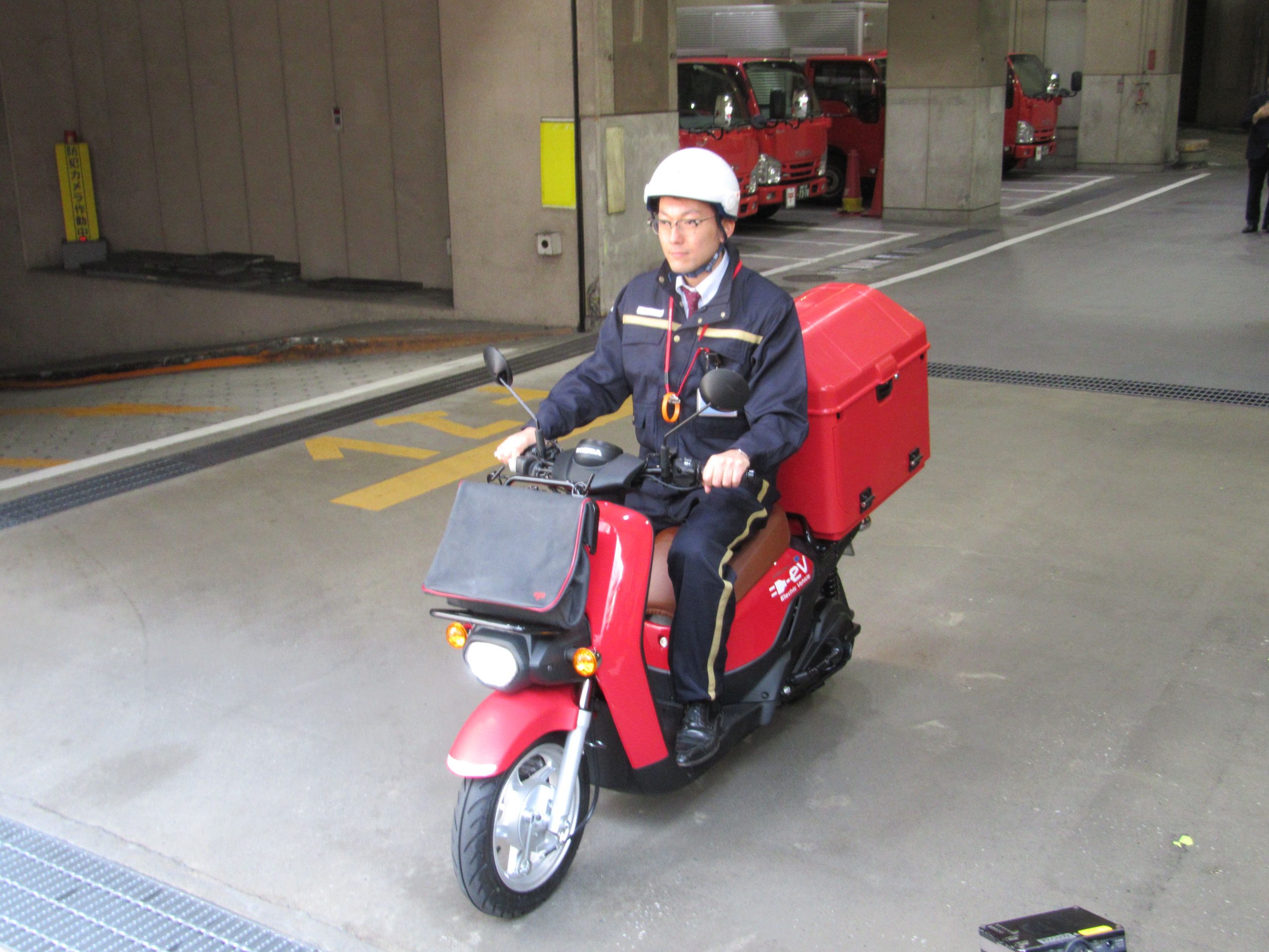 郵便配達用のバイクは、都内中心部だと1日20~30kmを走行する。郵便配達用バイクのスペックはベンリィ e:とほぼ同じで、1充電当たりの航続距離は原付1種タイプが87km、原付2種タイプが43kmとなっている。バッテリーが不足している場合は、充電器を備える郵便局の拠点で、フル充電のバッテリーに交換するだけですぐに乗り続けることができる。