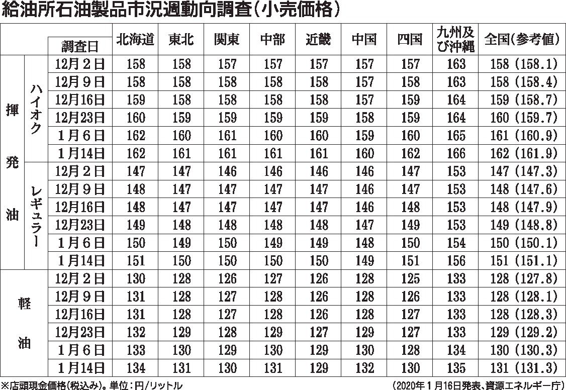 〈給油所石油製品市況週動向調査(小売価格)〉2025/9/29~11/4