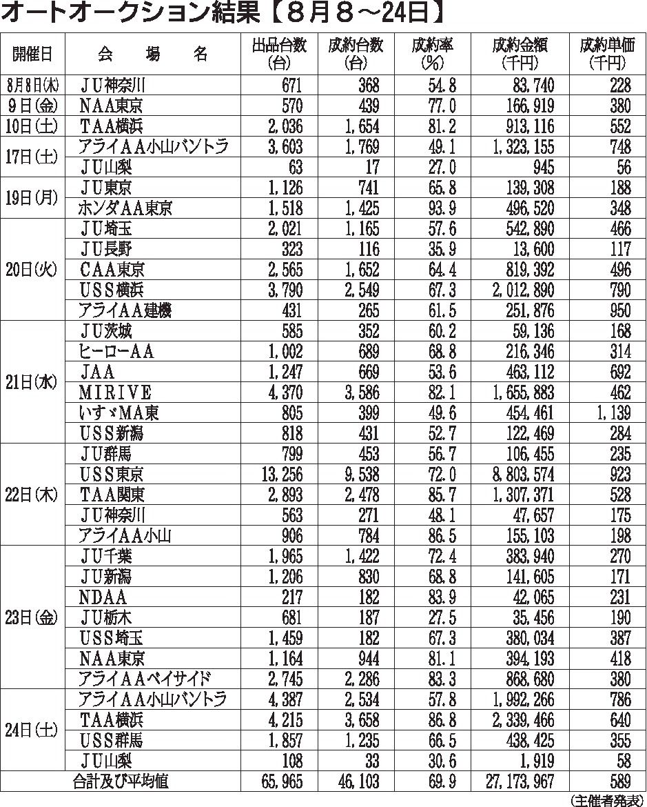 〈オートオークション結果〉首都圏 2025/11/3~8