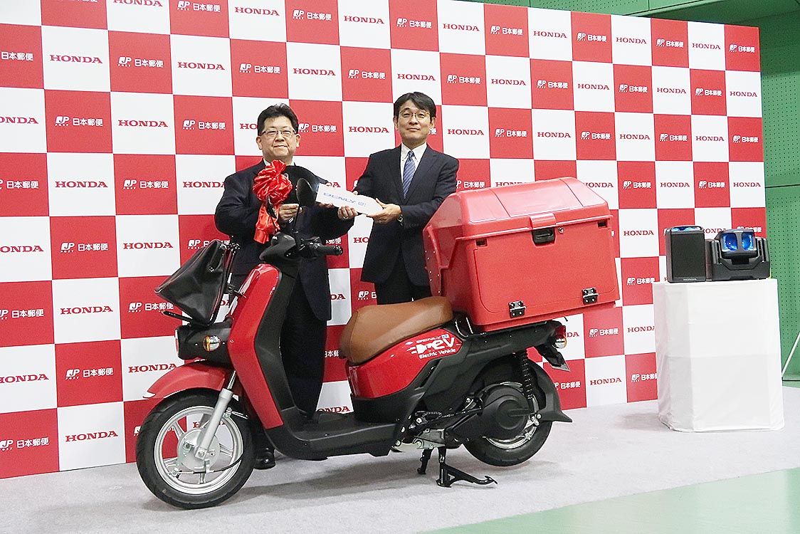 ホンダと日本郵便は17日、ホンダの電動二輪車「ベンリィe」を使用した郵便配達業務を開始すると発表した。東京都をはじめとした首都圏の近距離配達エリアの郵便局を中心に2019年度内に200台を配備し、20年度に約2千台を追加導入する見込み。日...