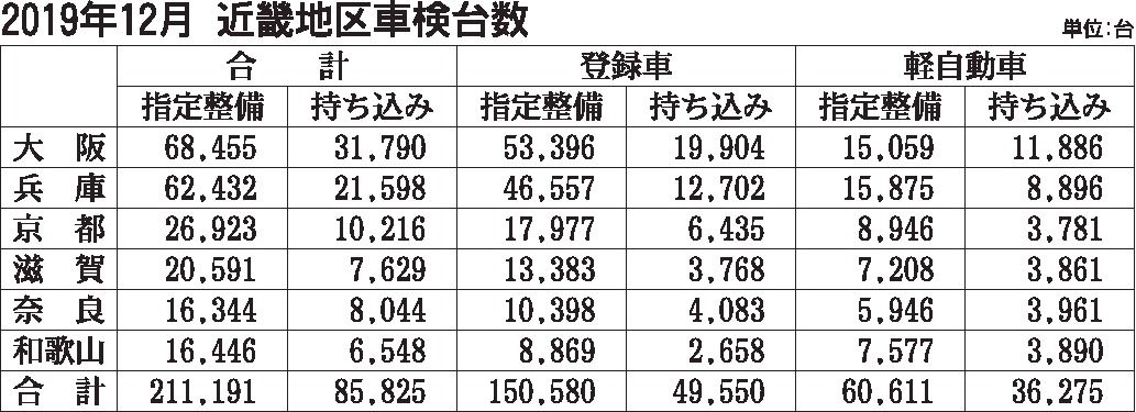 近畿地区12月車検台数、3カ月連続の減少 ユーザー車検は増