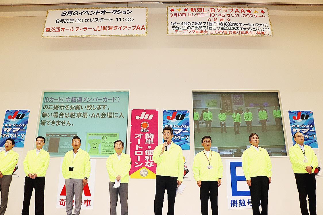 【新潟】JU新潟(海津博理事長)は、「第38回オールディーラー・JU新潟タイアップオートオークション(AA)」を開催した。総出品台数約1200台のうち、ディーラー出品台数は585台となり、秋の商戦に向けて、良質車を提供した。 海津理事長は...