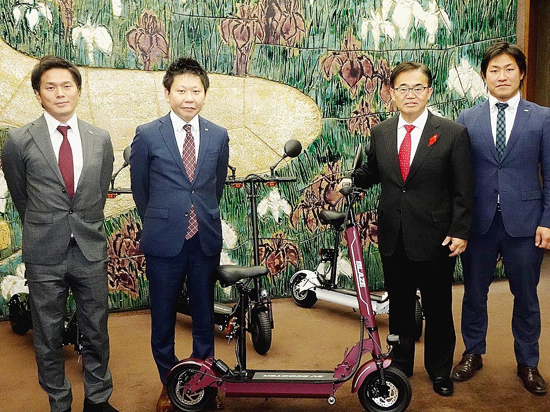 ブレイズ、県に電動キックスクーター寄贈