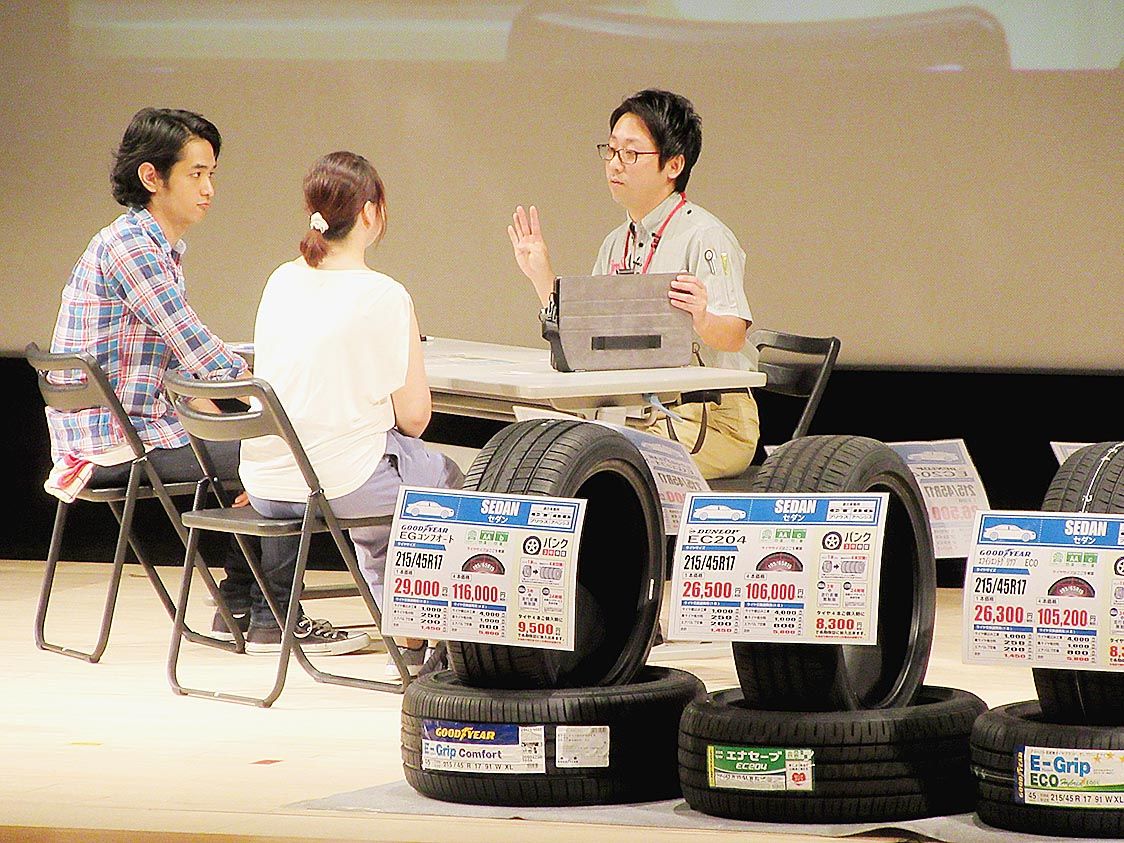 タクティー(新井範彦社長、名古屋市中村区)は27日、接客応対スキルを競う「第1回全国ジェームス店フロアコンクール全国大会」を名古屋市内で開催した=写真。84人が参加した地区予選を勝ち抜いた10人が出場。タイヤ販売の接客ロールプレーイング競...