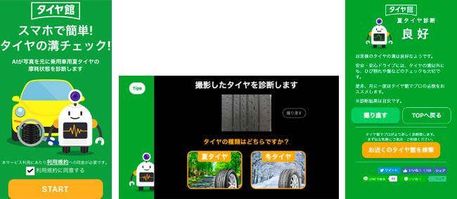 サービスは、乗用車用タイヤの路面との接地部をスマートフォンで撮影、画像をWebサイト上で、AIが摩耗状況を診断して結果を表示する。スタッドレスタイヤは、新品タイヤの溝深さの半分まで冬タイヤ用途で使用することができる。同社のスタッドレスタイヤは溝深さが半分になったことを目視でわかるようにしている。サービスでは、AIが溝の深さの目安を基に摩耗状況を診断し、「良好」「注意」「警告」の3つのレベルで示す。ユーザー自身が手軽にタイヤの摩耗状況を確認できるサービスとして提供する。