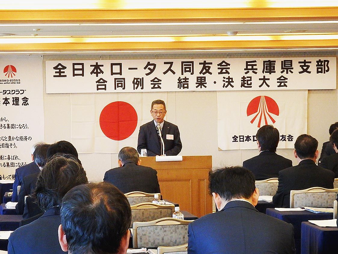 【神戸】全日本ロータス同友会兵庫県支部(柳生育士支部長)は26日、神戸市北区のホテルで「支部合同例会・秋の総合キャンペーン結果大会・春のキャンペーン決起大会」を開催した=写真。 柳生支部長は支部合同例会の挨拶で、「消費増税が影響して新車販...