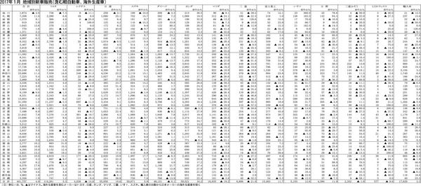 【2017年1月 地域別新車販売(含む軽自動車、海外生産車)】