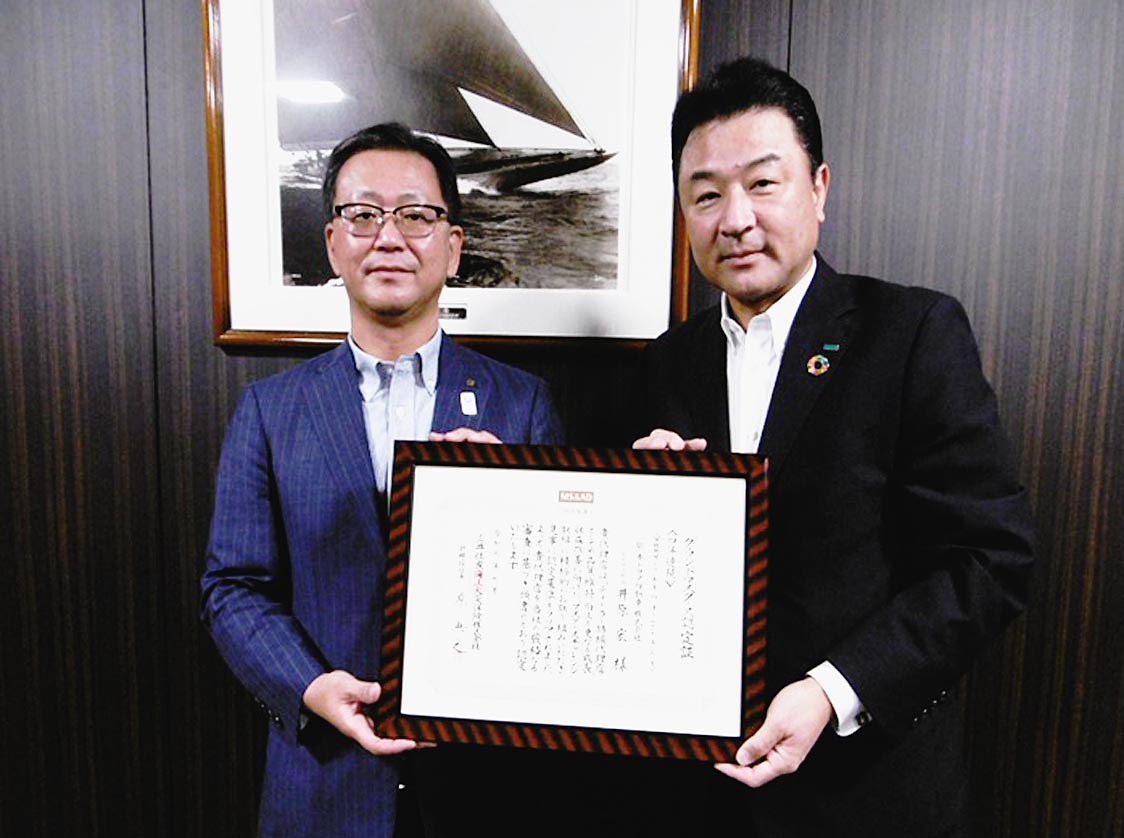 【熊本】熊本トヨタ(井原宏社長)は28日、三井住友海上火災保険のディーラー特級代理店における最高位の「グランドマスターズ」の認定を受けた。同社本社で認定式を開催して、三井住友海上熊本支店の岡本圭司支店長が井原社長に認定証を手渡した。 井原...