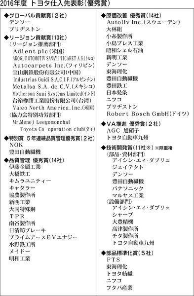 【2016年度 トヨタ仕入先表彰(優秀賞)】