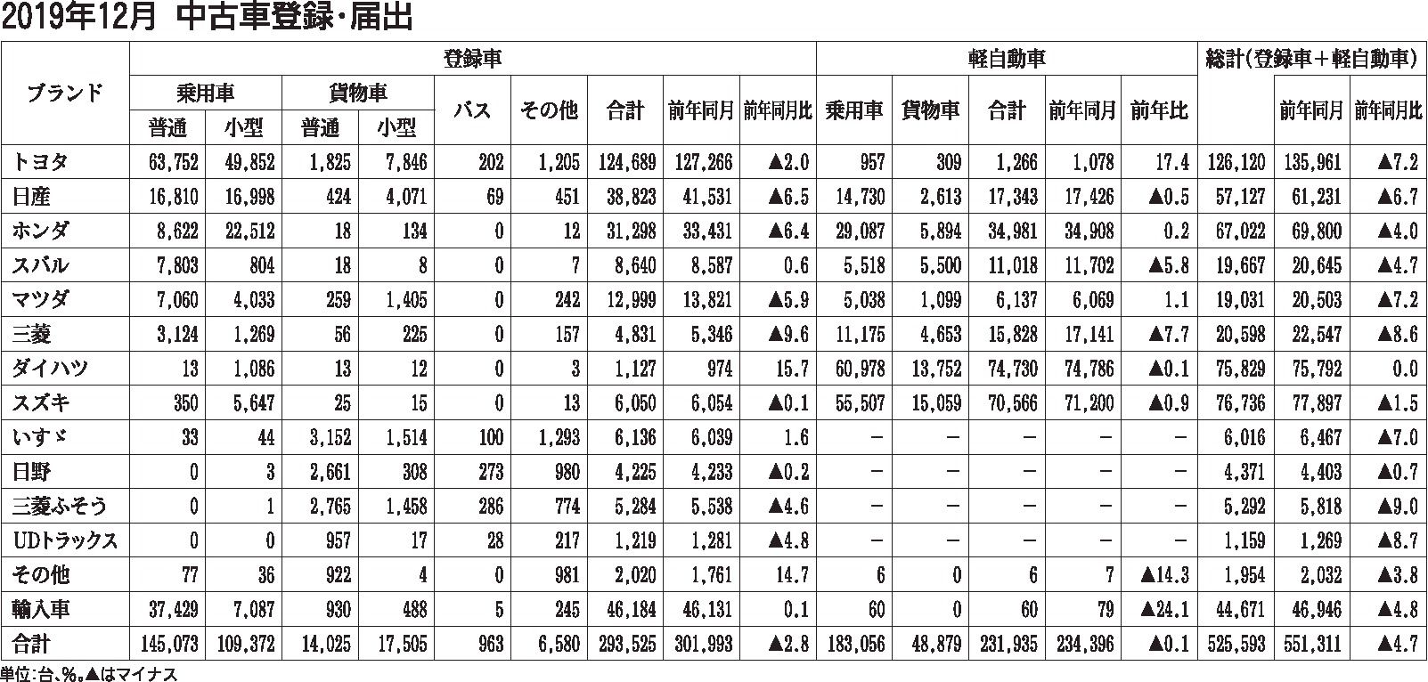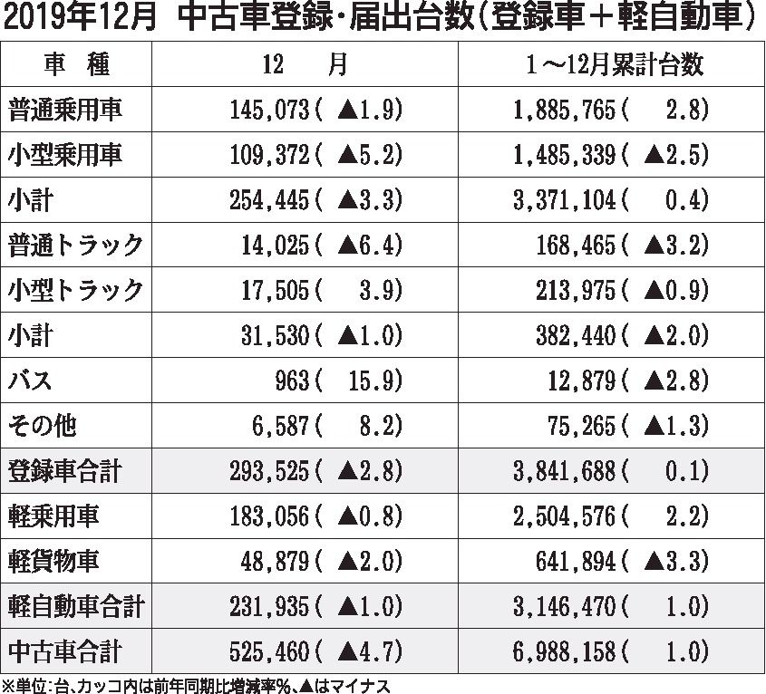 2019年12月の中古車登録・届け出台数