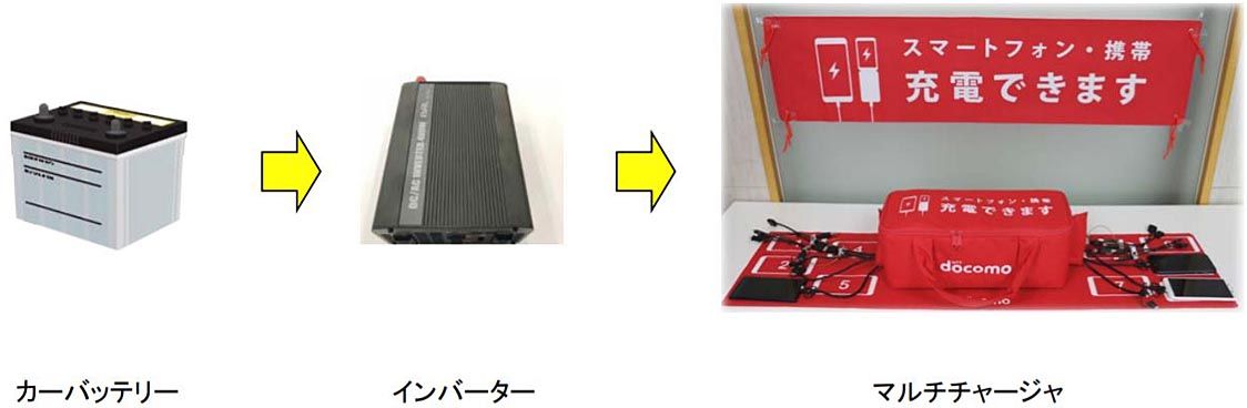 三井住友海上火災保険の整備業代理店組織であるアドバンスクラブ(田中雄二会長)は今年度内に、災害発生時に自動車用の鉛電池を活用して無料でスマートフォンの充電ができる体制を整える。NTTドコモの機器を用いて鉛電池とスマホを接続する=写真。災害...